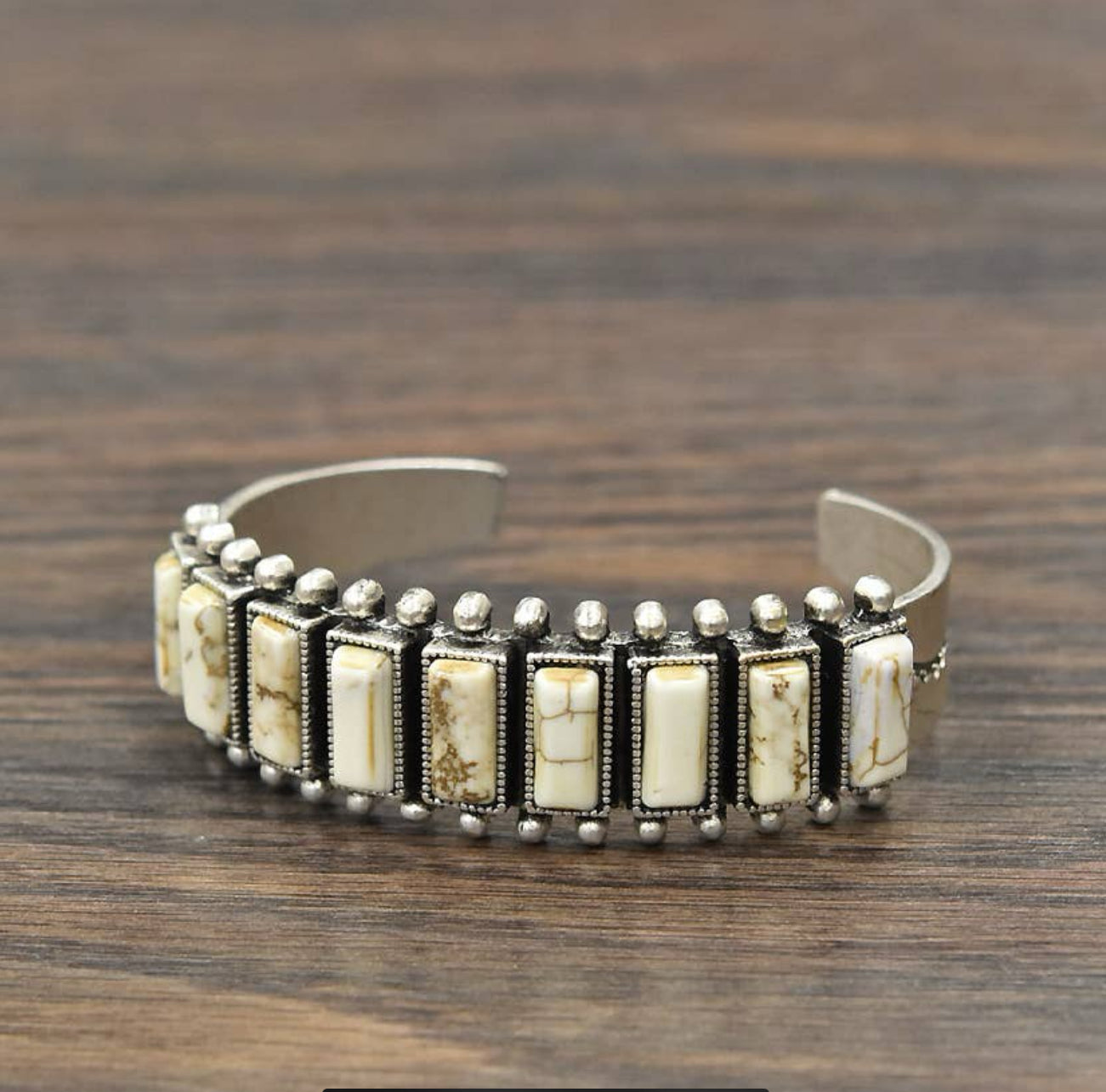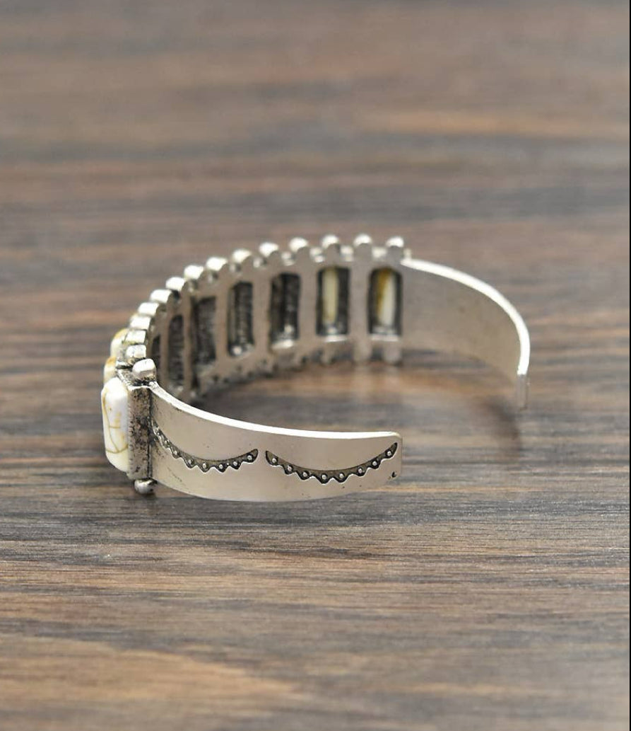 Turquoise "C" Cuff Bracelet * Natural stone may vary in size, color, or shape * 0.9" height band at center * 60 grams weight * Alloy material, antique silver plate * Nickel, Lead & Chrome free