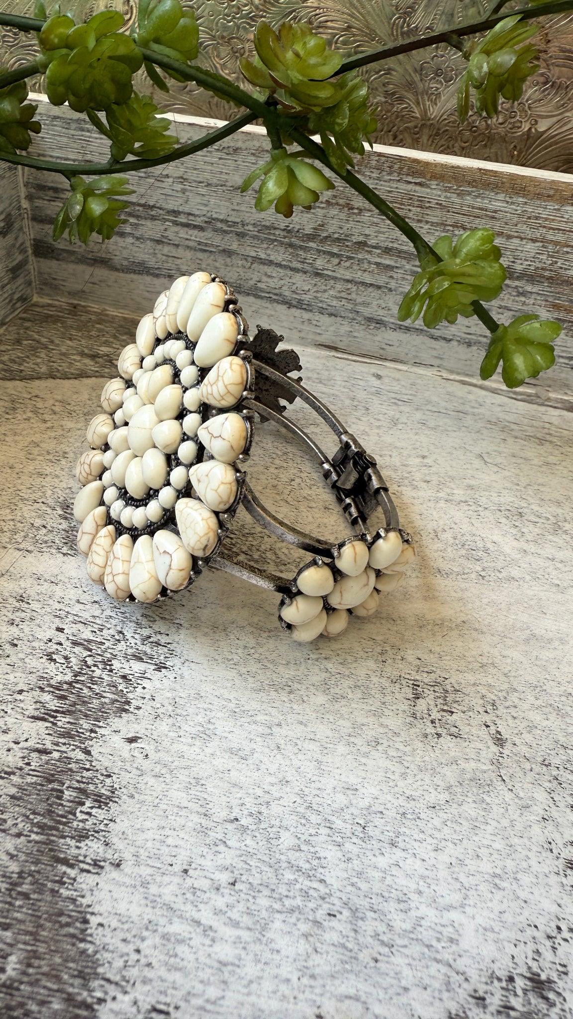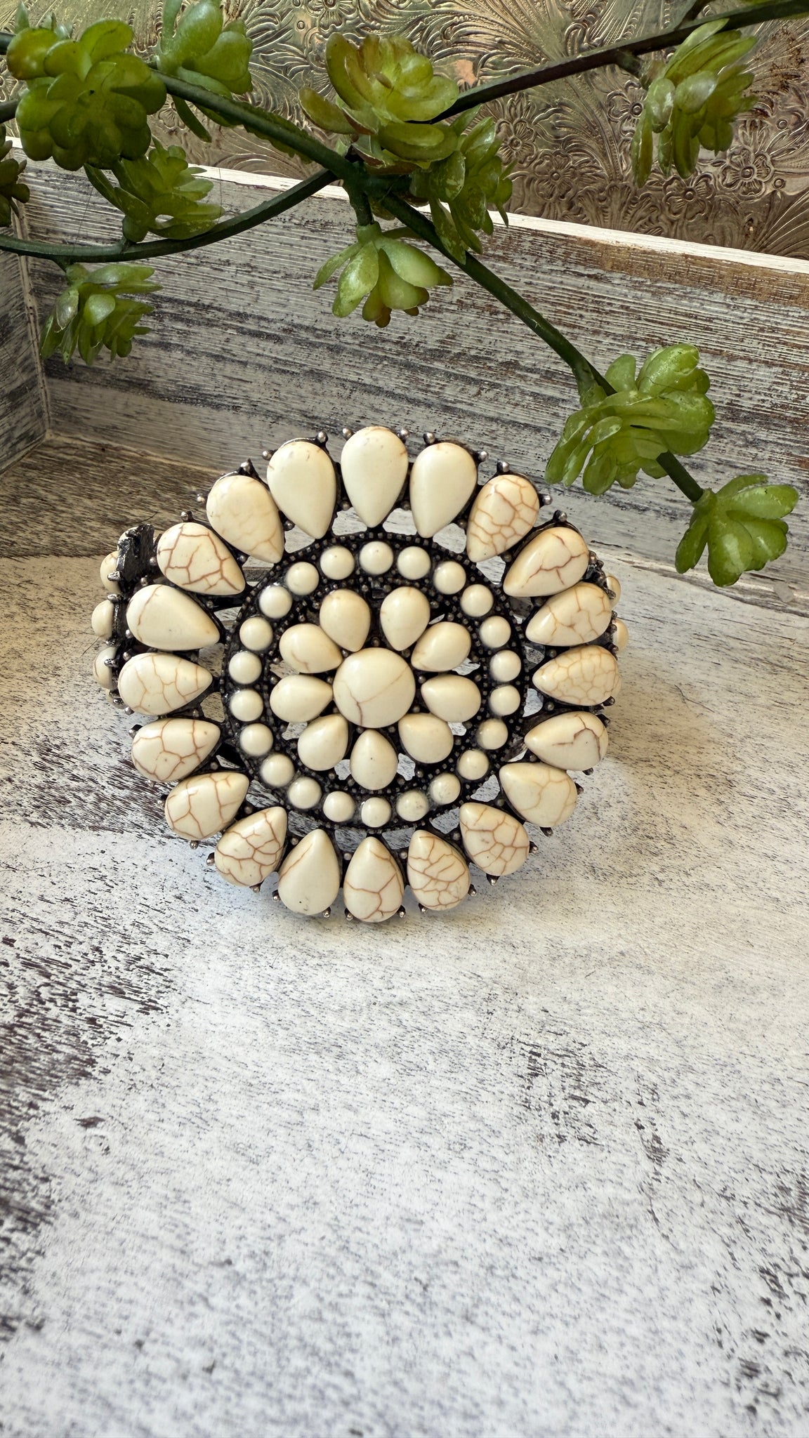 - Large concho-style cluster cuff bracelet