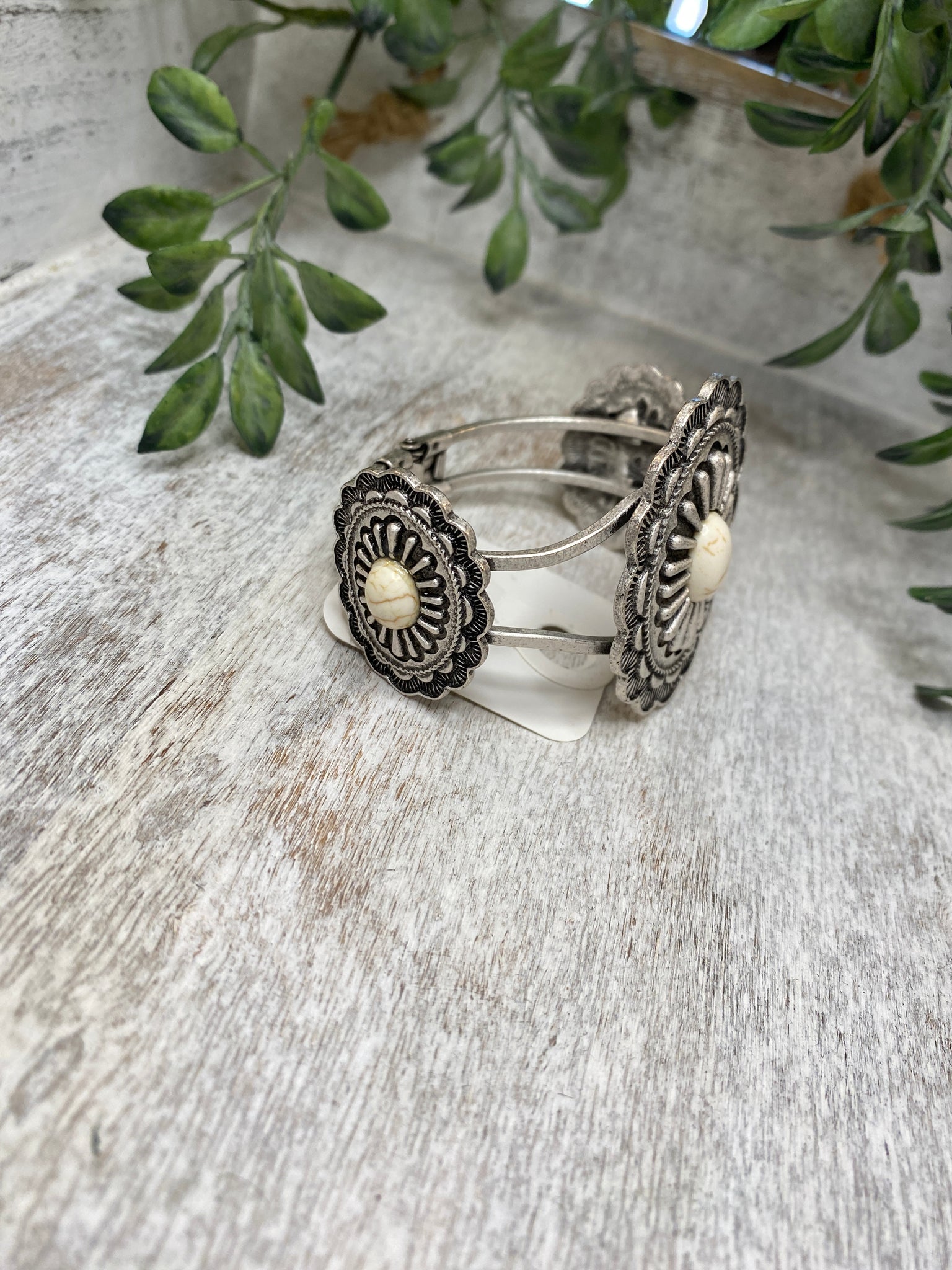 Crafted for those who love boho jewelry, Southwestern style, and Western fashion, this adjustable cuff bracelet pairs beautifully with everything from casual denim to dressy outfits. The scalloped concho-style design draws inspiration from traditional Navajo and Southwestern jewelry, giving it that authentic desert vibe.